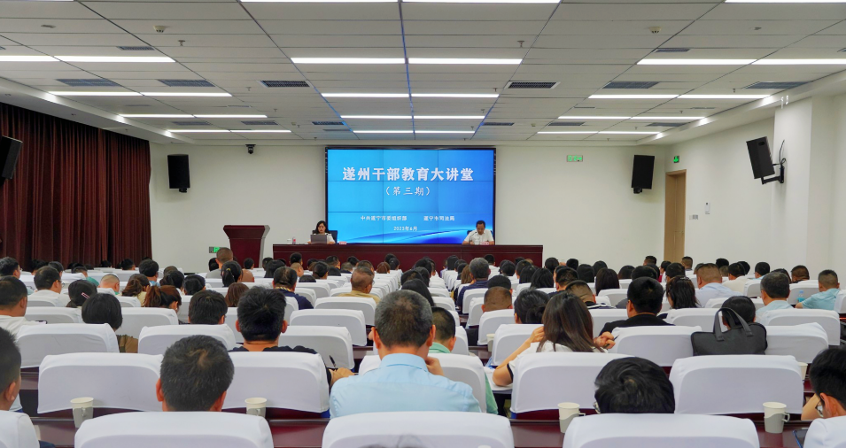 6月30日,第三期“遂州干部教育大讲堂”博学课堂在市委党校开课,四川明炬(遂宁)律师事务所陈小翠律师应邀为200余名市直部门、市属企事业单位干部进行法治专题培训。本期课堂由市司法局党组成员、机关党委书记徐南平主持。