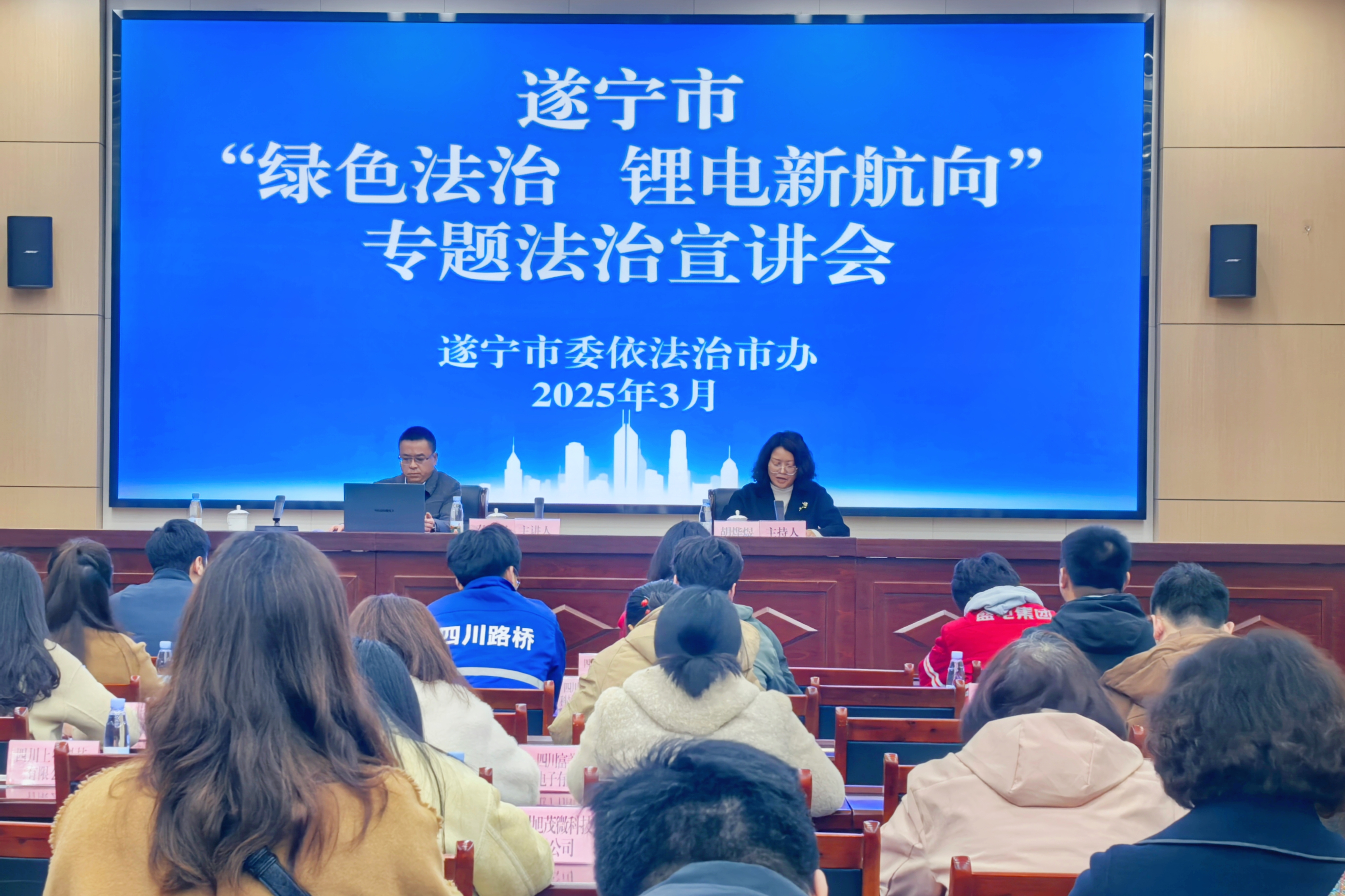 3月20日,遂宁市委依法治市办主办的“绿色法治 锂电新航向”专题法治宣传活动在四川射洪经开区举行,射洪市司法局、四川射洪经开区锂电产业局、生态应急局、企业服务中心工作人员、锂电产业园部分企业中层领导及工作人员近50人参加活动。