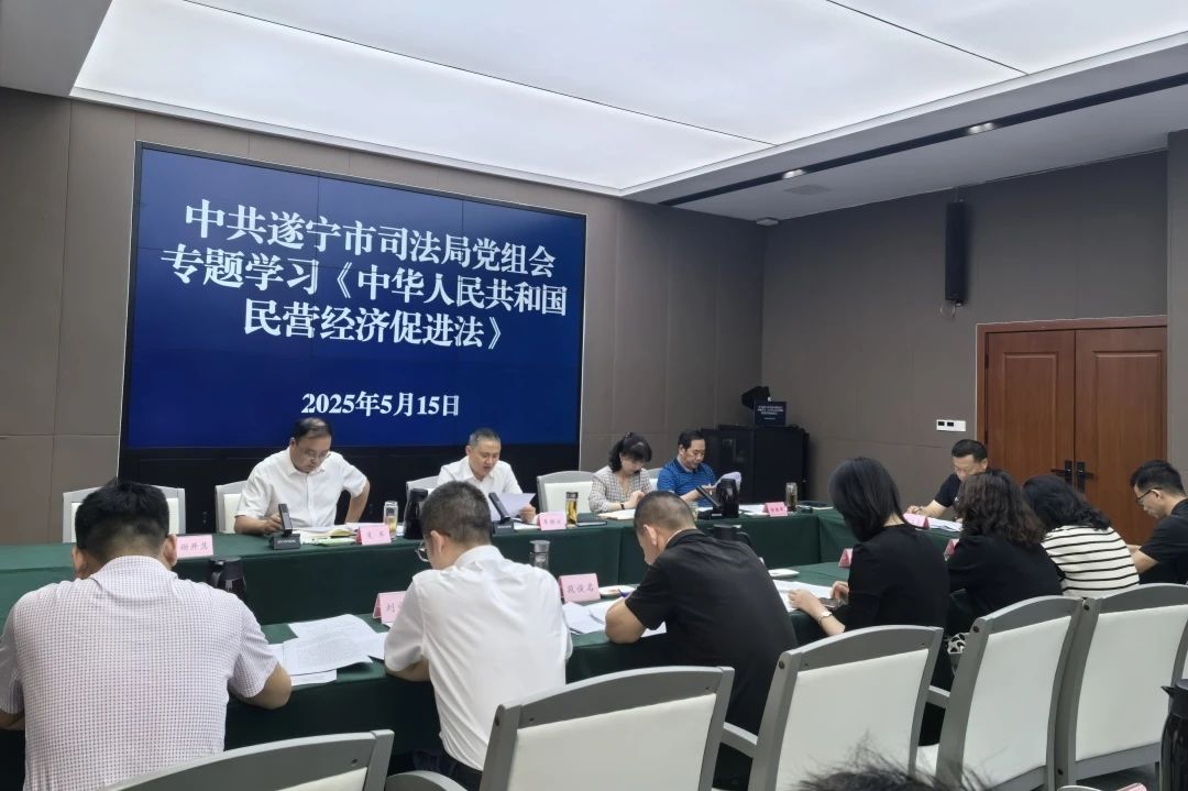 《中华人民共和国民营经济促进法》(以下简称《民营经济促进法》)将于5月20日起施行,为充分发挥司法行政职能作用,全力贯彻落实《民营经济促进法》,为民营经济高质量发展保驾护航,5月15日,遂宁市司法局党组召开扩大会议专题学习《民营经济促进法》,研究贯彻落实意见。