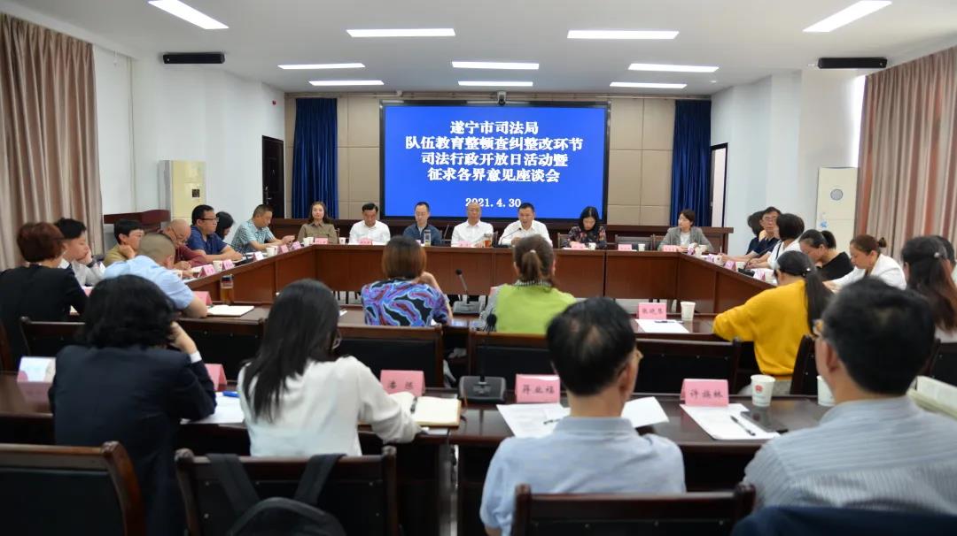 为进一步推进队伍教育整顿查纠整改走深走实,落实开门搞整顿,4月30日上午,市司法局组织开展队伍教育整顿查纠整改环节征求意见座谈会暨“司法行政开放日”活动,会议邀请了省级特邀监督员代表,市区两级人大代表、政协委员,企业家代表、离退休干部代表,律师、公证员、鉴定员代表,人民监督员代表、群众代表和新闻媒体代表40余人参加。局党组成员、副局长余海主持会议,局党组成员、副局长秦丹和局党组成员、政治部主任康世通出席会议,相关科室负责人参加会议。