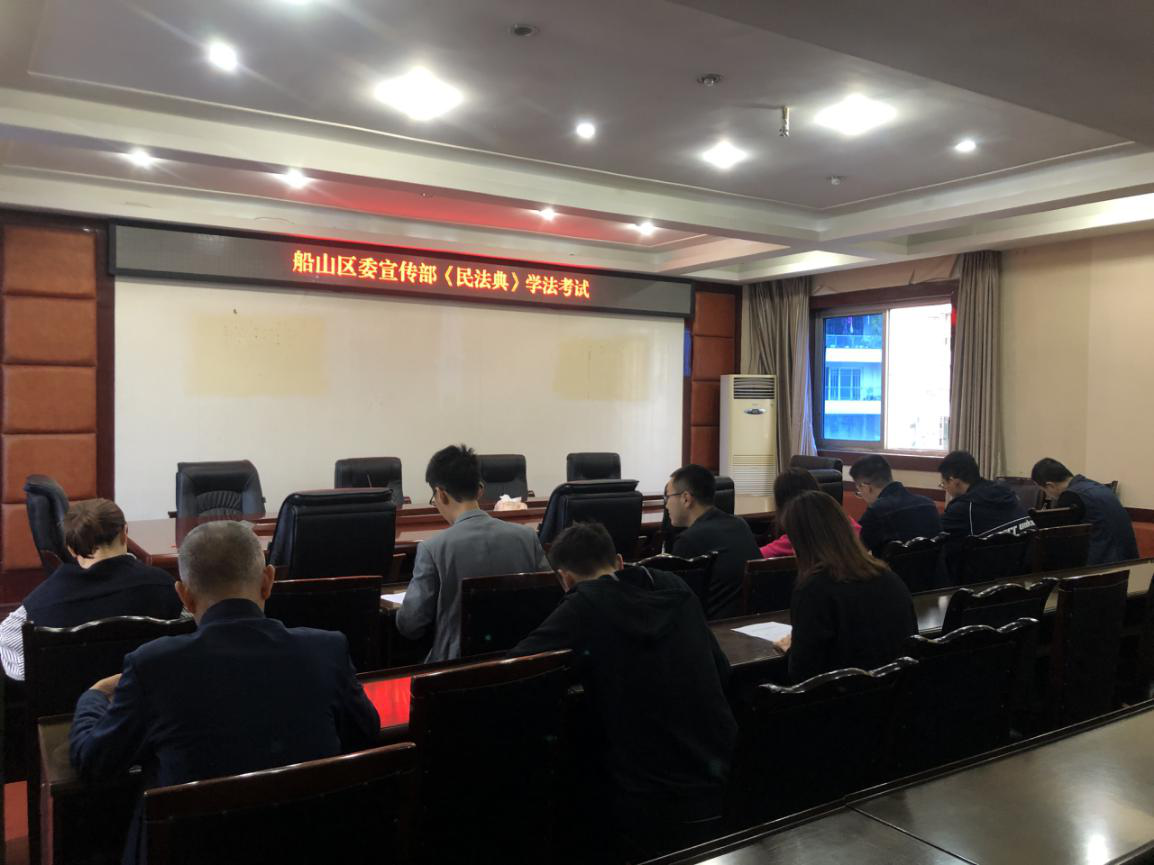 为提升国家工作人员对《中华人民共和国民法典》的认识,提高依法执政和依法行政能力和水平,近日,船山区广泛组织开展了国家工作人员民法典考试,试题由区委依法治区办组织法律专业人员结合国家工作人员工作与民法典的联系精心选编,分为单选题、多选题及判断题,由全区各级各部门组织所有在职干部以集中考试的方式举行。