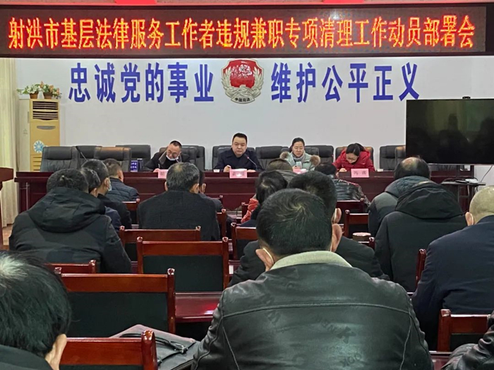 为进一步规范法律服务行业秩序,不断提升人民群众的法治获得感,2月19日,射洪市召开专项清理工作动员部署会,安排部署基层法律服务工作者违规兼职专项清理相关工作。市司法局、市人民政府法律援助中心及全市基层法律服务所共计39人参加会议。