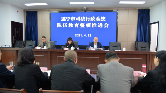 4月12日,遂宁市司法行政系统队伍教育整顿推进会召开,全省第八驻点指导组司法行政专班负责人帅敏到会指导。全局干部职工及律师、公证、司法鉴定三个协会负责人等70余人参加会议。会议由局党组书记、局长温勉光主持。