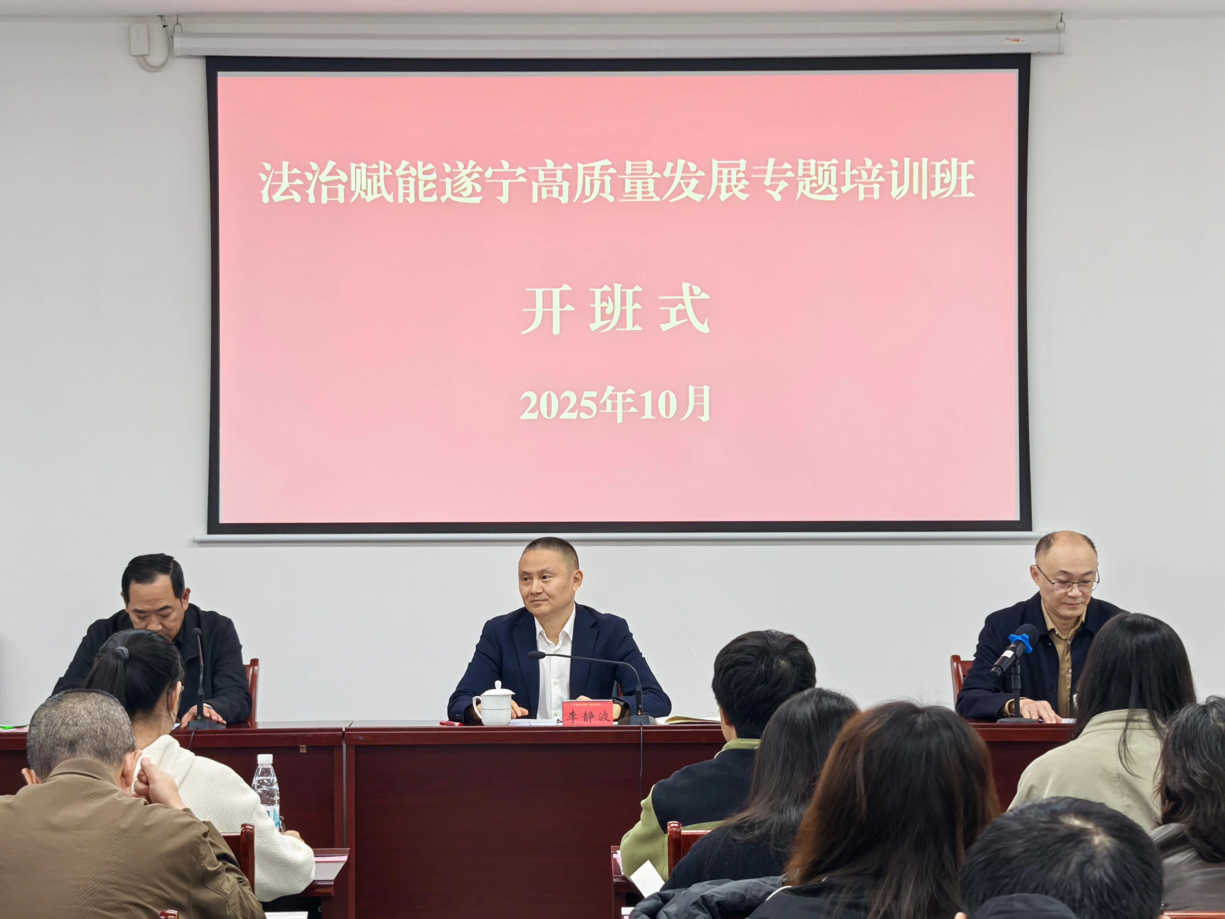 2025年10月22日至24日,法治赋能遂宁高质量发展专题培训班在市委党校举办。市委依法治市办副主任、市司法局局长李静波出席开班仪式并作动员讲话。各县(市、区)从事全面依法治市、法治政府建设、行政执法监督、行政复议、合法性审查相关工作和市直部门从事法治工作的骨干同志共50余人参加培训。