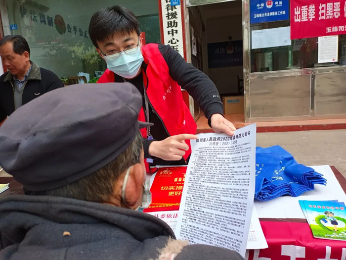 聚力部门联动,打好“合力战”。玉峰司法所联合玉峰镇政府和中石油大英燃气有限责任公司分工协作、紧密配合,织密扎牢森林防灭火安全网。结合辖区坟地、林地实际情况,认真组织开展森林防灭火隐患排查,加大森林防灭火安全宣传力度,严查野外用火、确保火种不上山,火源不入林。