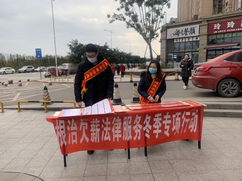 为全面贯彻落实《保障农民工工资支付条例》,切实保障农民工合法权益,维护劳动关系和谐稳定,营造良好的营商环境。12月29日,遂宁高新区司法分局在华翔城开展了一场以“根治欠薪法律服务冬季专项行动”为主题的宣传活动。