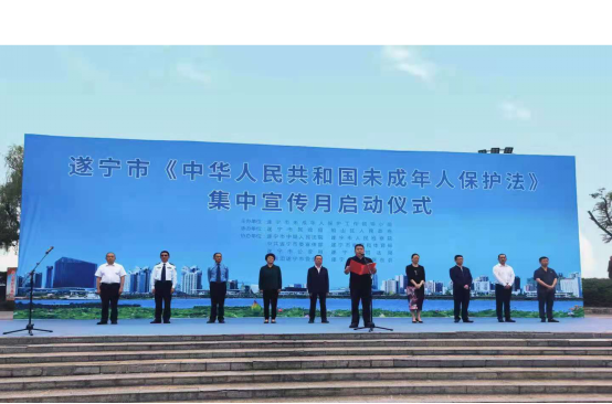 5月27日,遂宁市《未成年人保护法》集中宣传月启动仪式在船山区犀牛堤广场举行。市民政局、市司法局等十余个单位在现场开展了形式多样、丰富多彩的法治宣传活动。