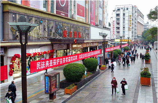 来自遂宁市、船山区两级部门60余家单位分别在中央商务区步行街两侧设立宣传点,通过摆放法治展板,设置咨询台、发放宣传资料、赠送法治小礼品等方式普及法律知识。近200名工作人员和志愿者各就其位、各司其职,为群众答疑解惑、分发宣传资料的画面形成了今天市城区最亮丽的一道风景线。