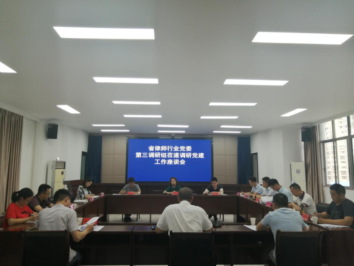 座谈会上,秦丹代表遂宁市律师行业党委向调研组汇报了遂宁市律师行业成立至今党建工作基本情况,以及全面加强新时代律师行业党的建设工作落实情况。