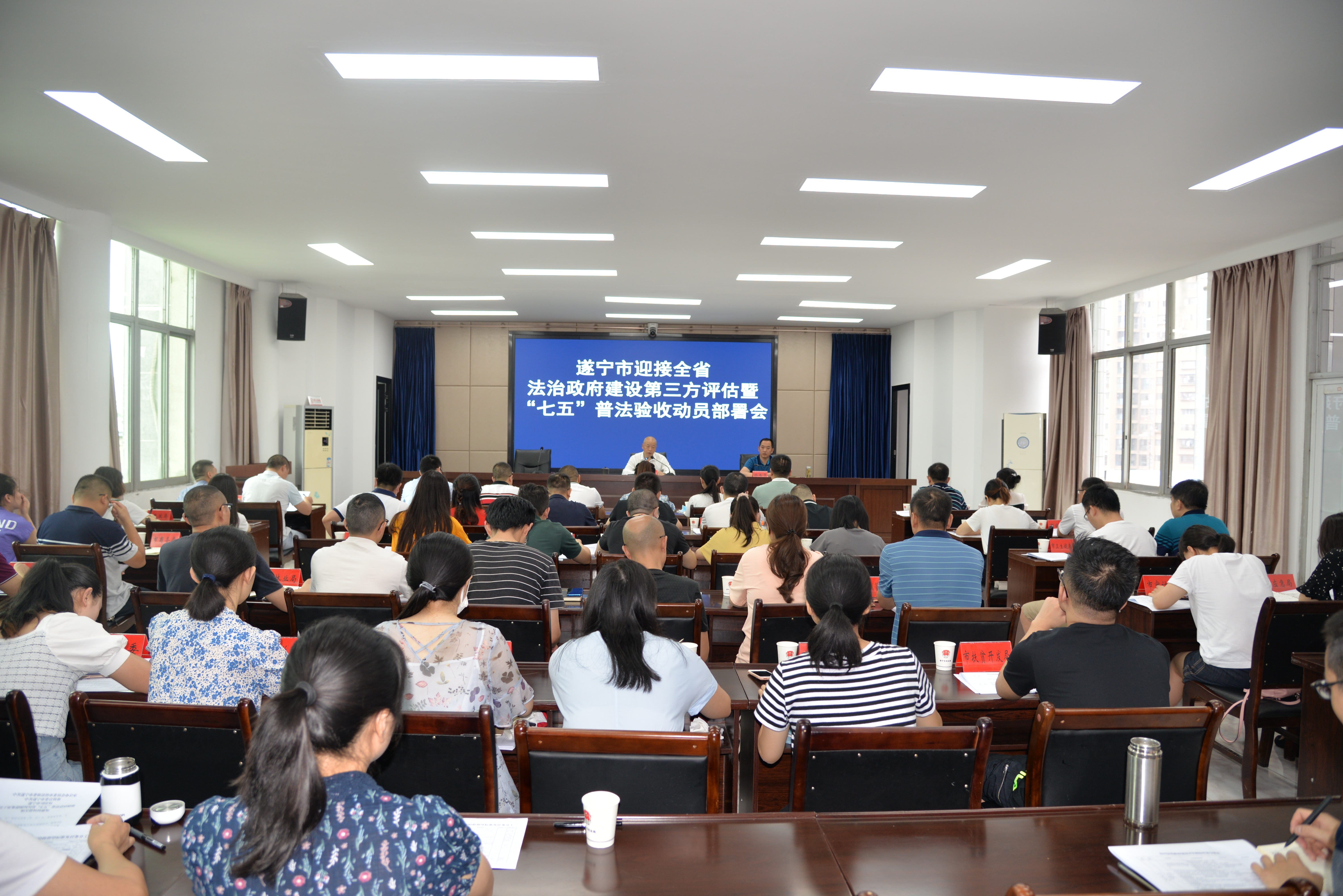 7月7日,四川省遂宁市召开迎接全省法治政府建设第三方评估暨"七五"普法验收动员部署会。市直相关科室负责人,共计50余人参加会议。会议由市依法治市办公室主任、市司法局局长温勉光主持。