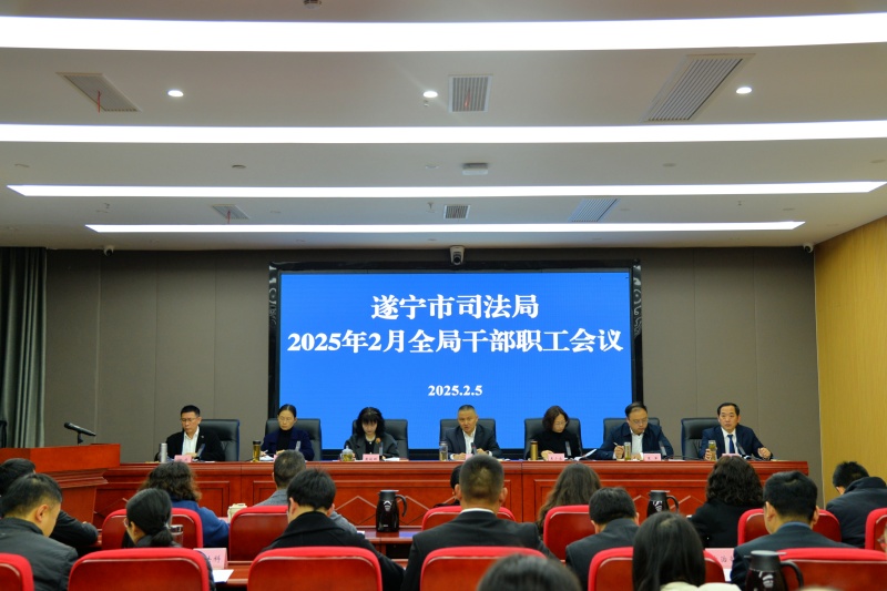 春节长假后上班第一天,遂宁市司法局召开全局干部职工会议,会议深入学习贯彻市委副书记、市长刘会英新春开年走访调研市司法局相关指示精神,动员全局上下以“开局就是决战、起步就是冲刺”的奋斗姿态,为全年工作开好局、起好步;各科室及下属单位负责人围绕1月工作开展情况和2月工作安排进行汇报,分管领导逐一进行点评。市司法局党组书记、局长李静波主持会议并讲话。