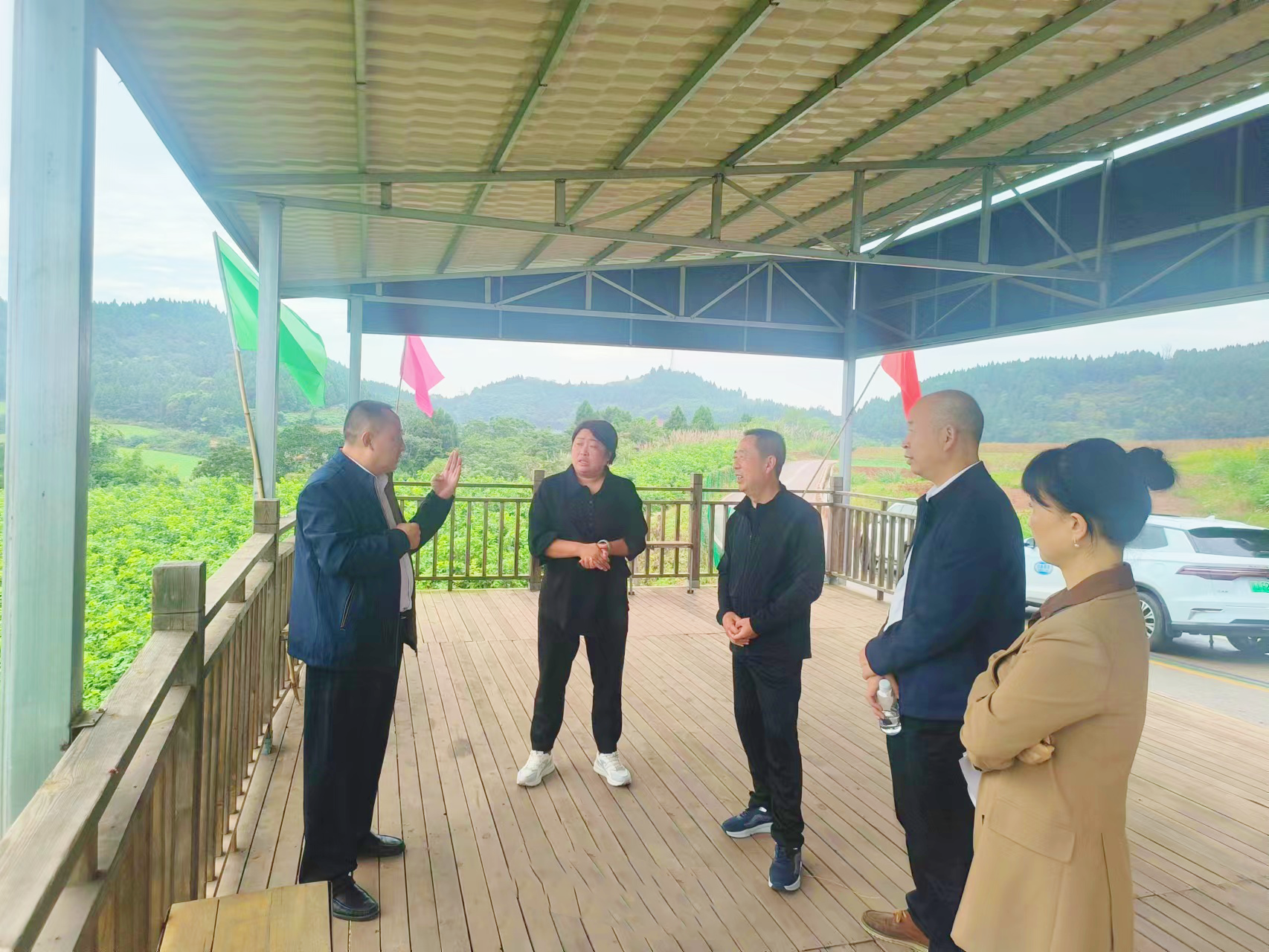 付勇一行先后深入青坪村桑蚕鸡养殖基地、黑鸡养殖场和五一村秋洋芋种植示范点进行了实地调查,了解该镇乡村集体经济、产业发展、基层治理等方面的情况。