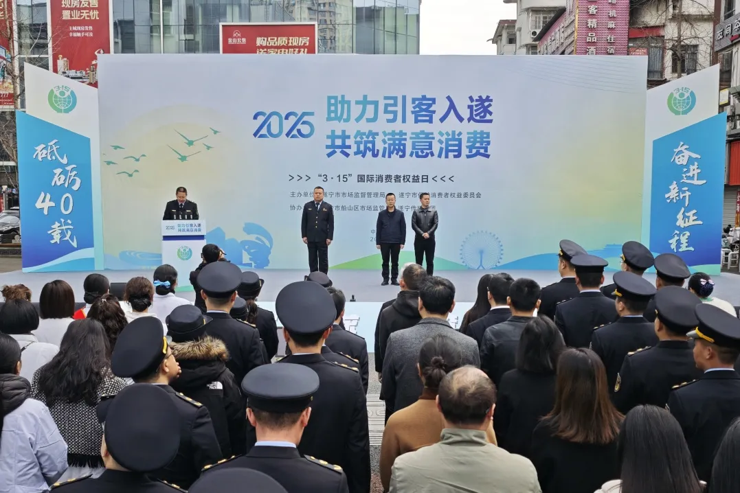 为认真落实市委八届十次全会精神,优化提升“引客入遂”市场消费环境,激发消费活力,充分凝聚各方力量,推进消费维权共建共治共享,营造安全放心舒心消费环境,3月15日,遂宁市2025年“3·15”国际消费者权益日集中宣传活动在市城区中心商业区百福广场举行。