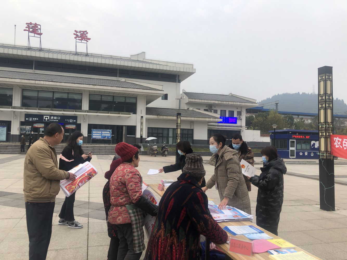 年底适逢农民工返乡潮,12月23日,鸣凤司法所联合鸣凤政府、鸣凤法庭,开展了农民工讨薪维权法治宣传进车站活动,旨在解答农民工关心的法律问题,维护广大农民工劳动者的合法权益。司法所工作人员积极向群众宣传《保障农民工工资支付条例》等法律法规,重点普及了法律援助政策,蓬溪县公共法律服务中心设立法律援助“绿色通道”,农民工以“追索劳动报酬、经济补偿、工伤赔偿等劳动争议案件”为由申请法律援助的,不用提交经济困难申报材料,确保每一位返乡农民工都能享受到法律援助服务。返乡群众纷纷询问工作人员关于劳动法、劳动合同签订和拖欠薪资等一系列问题。活动现场发放宣传资料200余份,解答咨询20余次。