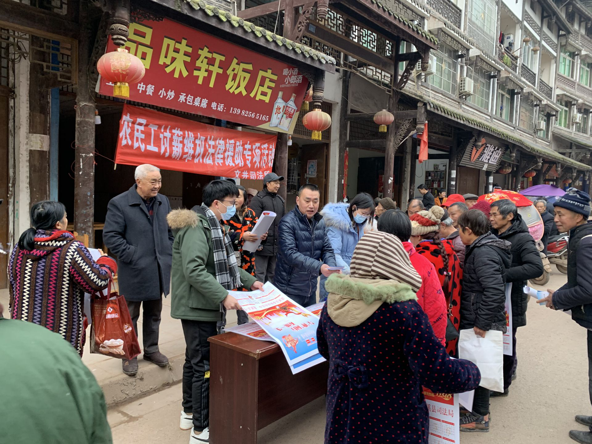 12月23日上午,文井司法所联合文井镇农民工服务中心、文井镇应急办共同开展以“法援惠民生,助力农民工”为主题的农民工讨薪维权法律援助专项活动。活动深入文井镇文峰街等农民工集聚地,通过悬挂横幅、摆设咨询台、发放宣传资料及宣传品等方式,吸引了大量的农民工朋友前来参与。活动过程中,工作人员耐心地给各位农民工及其家人讲解与他们密切相关的法律法规和法律援助的申请条件、受理程序等,对于农民工现场提出的疑惑,也进行了充分的解答。活动共计发放宣传手册及物品500余份,现场解答农民工对于法律方面的咨询20余人次。