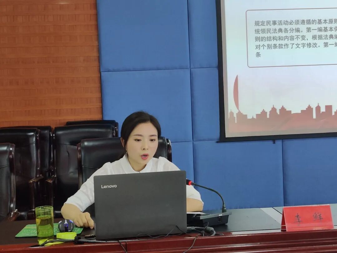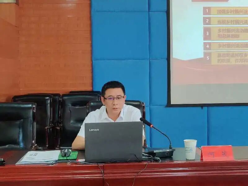 当天下午,市委依法治市办秘书科科长何茂、市司法局行政立法科李鲜分别以"关于乡村振兴法治建设的思考"和"学习解读《中华人民共和国民法典》"为主题作了现场培训。