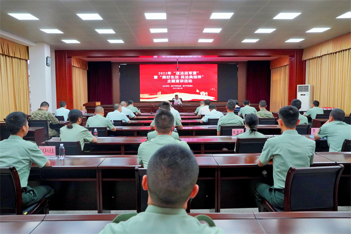 5月28日是《中华人民共和国民法典》颁布三周年,为深入学习宣传贯彻习近平法治思想,进一步弘扬拥军优属优良传统,提升军人法律素养,增强广大官兵尊法学法守法用法意识。6月2日,市司法局联合市退役军人事务局在遂宁市军分区开展“送法进军营”暨“美好生活·民法典相伴”主题宣讲活动。