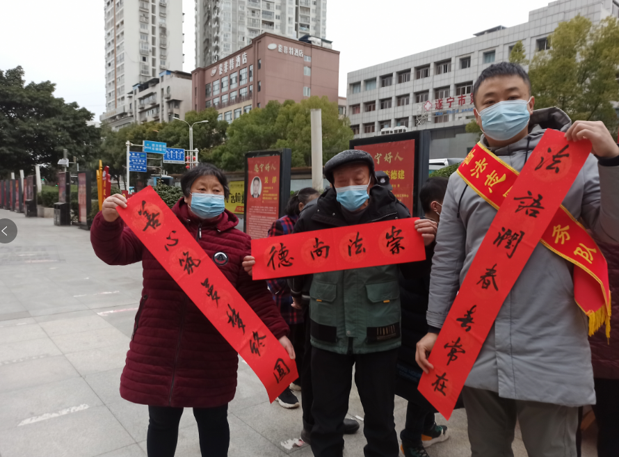 新春将近,年味愈浓,为进一步弘扬传统文化、丰富群众的法治文化生活,1月14日,市司法局联合民建遂宁市委文化建设委在船山区裕丰园广场开展了“法治春联进万家”活动,为广大群众送上新春的祝福。