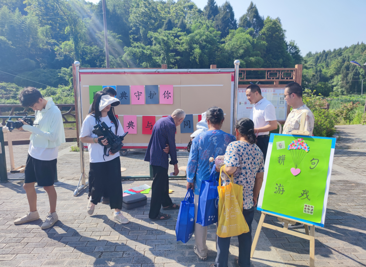 “三个一百”走进乡村。蓬溪县司法局、鸣凤镇人民政府在鸣凤镇七星村开展《中华人民共和国民法典》走进乡村“三个一百”法治宣讲活动和法治游园活动。