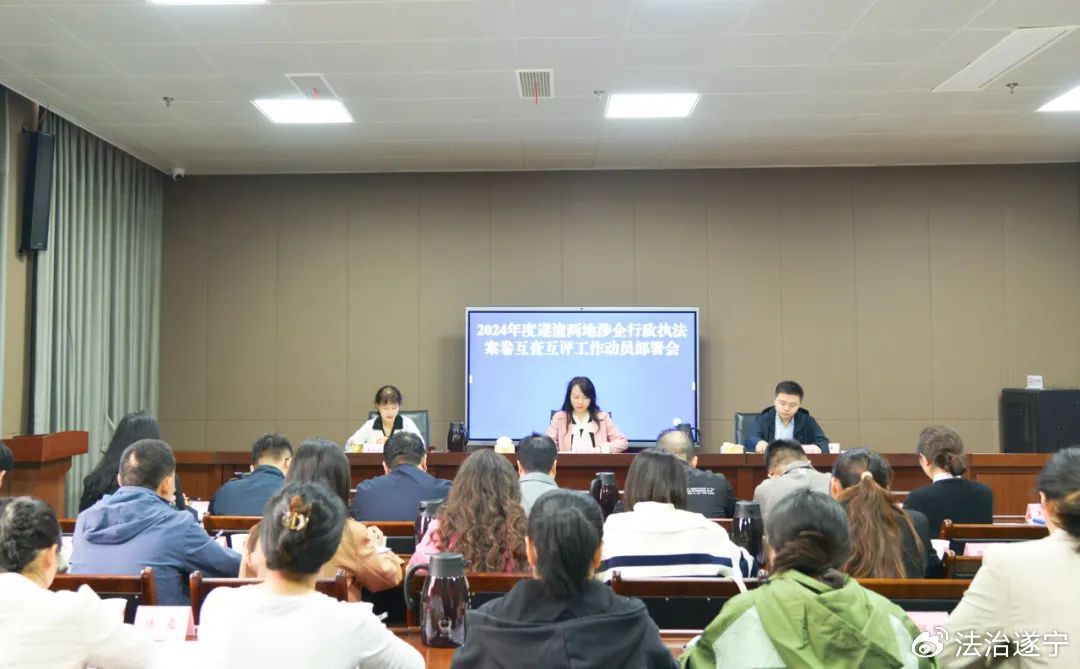 评查动员:遂宁市司法局副局长黄媛琳主持评查动员会,会上重庆市潼南区司法局副局长张荣德作动员讲话,四川省司法厅行政执法协调监督局副局长朱晓科出席并讲话。朱晓科指出,要提高站位认识案卷评查在提升执法规范化建设中的重要作用,要精心组织出成效强化评查发现问题的结果运用,要突出遂潼两地一家亲谱写行政执法监督协作新篇章。会上还重点讨论通过了《遂潼两地行政执法案卷评查办法》,为两地深入合作并持续开展行政执法案卷交叉评查工作提供了遵循。