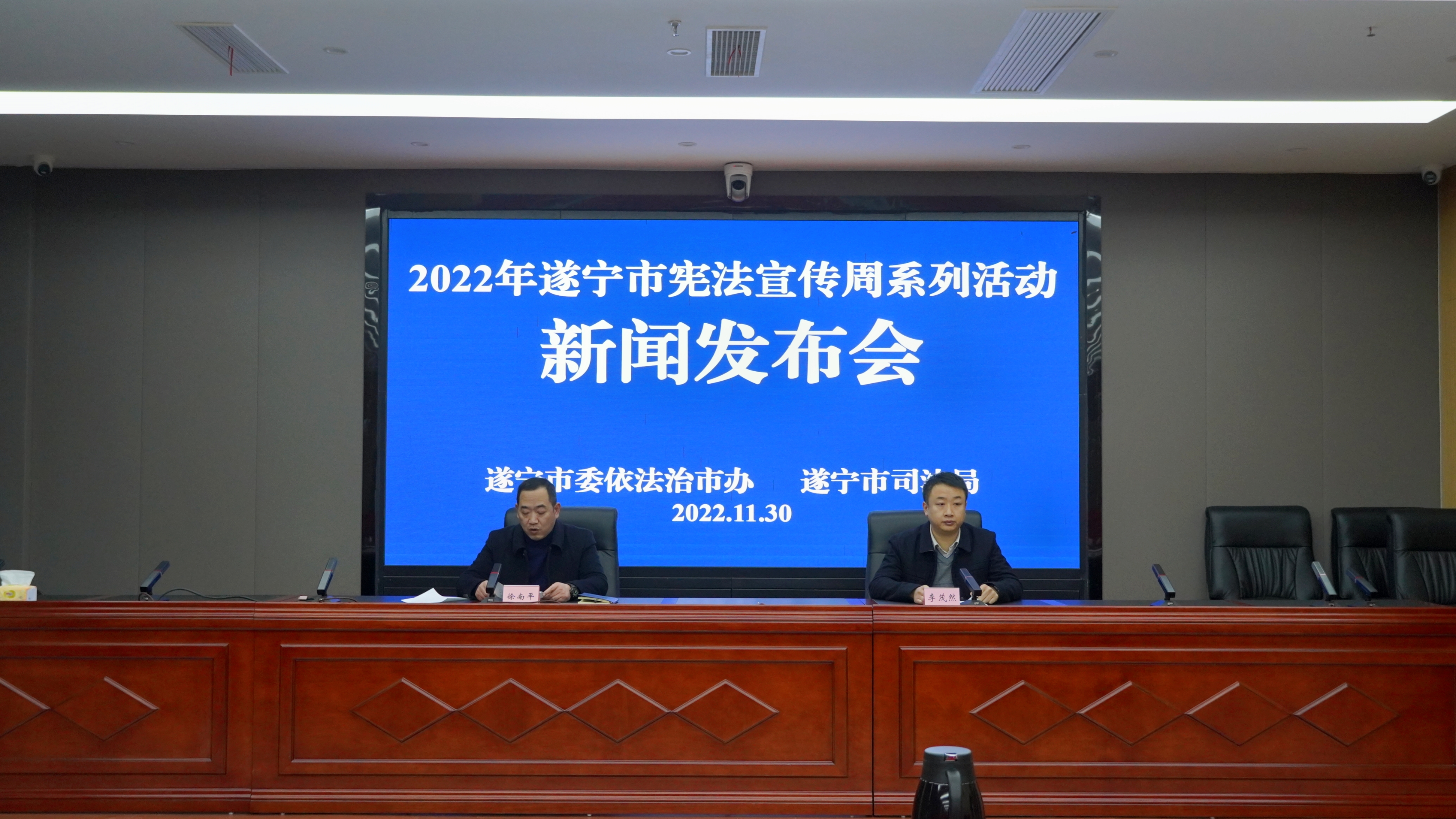 为全面贯彻落实党的二十大精神及习近平总书记关于宪法的重要论述,大力弘扬习近平法治思想,维护宪法权威,营造尊法、学法、守法、用法的法治氛围。11月30日上午,市司法局举行新闻发布会,市委依法治市办副主任,市司法局机关党委书记徐南平就2022年遂宁市宪法宣传周系列活动进行了具体介绍。
