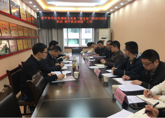 围绕强化部门联动与综合执法,提升执法效能主题,市司法局党组成员、副局长余海带领市司法局法治督察调研科、行政执法协调监督科一行,下沉到大英县开展调研。与县司法局、县委编办、县综合执法局、县市场监管局、县交运局展开座谈,听取了大英县司法局工作汇报,同与会部门开展了深入座谈交流,详细了解各部门在强化部门联动与综合执法,防范多头管理、重复执法或监管漏洞,强化执法队伍管理、规范执法行为方面的经验做法,仔细询问了存在的困难和问题,征求了意见建议。
