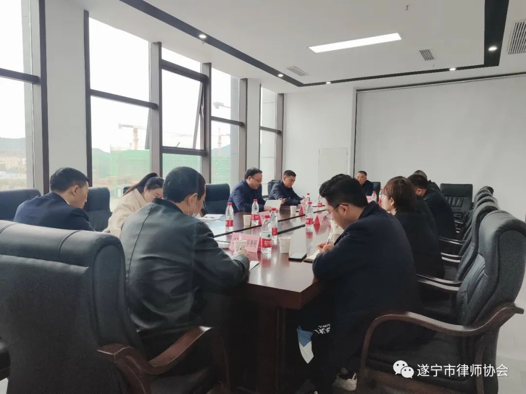 3月24日,遂宁市司法局党组成员、副局长,市律师行业党委书记夏军对射洪市部分律师事务所进行了走访调研,详细了解律所的党建工作、律所管理、业务发展及人才培养等情况,着重询问律所的发展规划及市场规范发展,并与律师代表举行座谈。