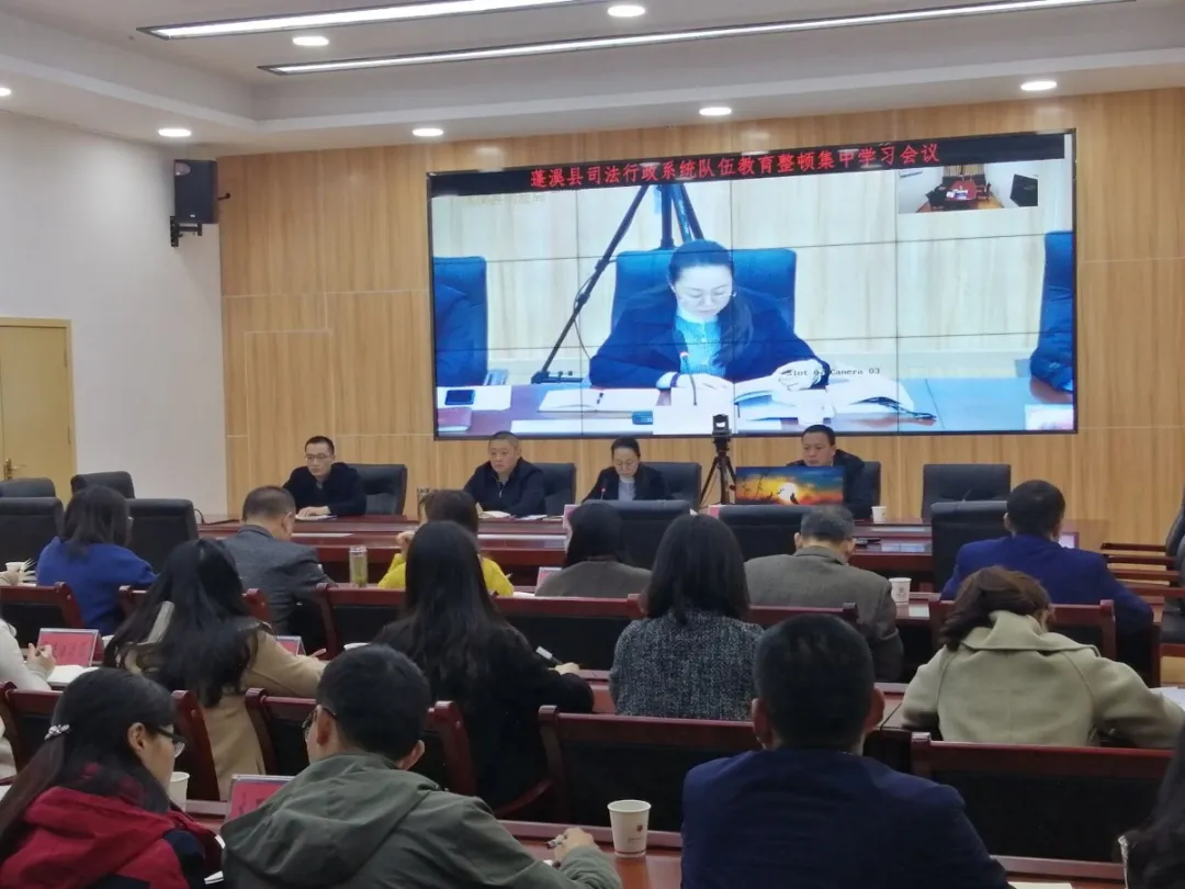 3月25日晚,蓬溪县司法局召开司法行政系统队伍教育整顿党组书记讲党课暨集中学习。