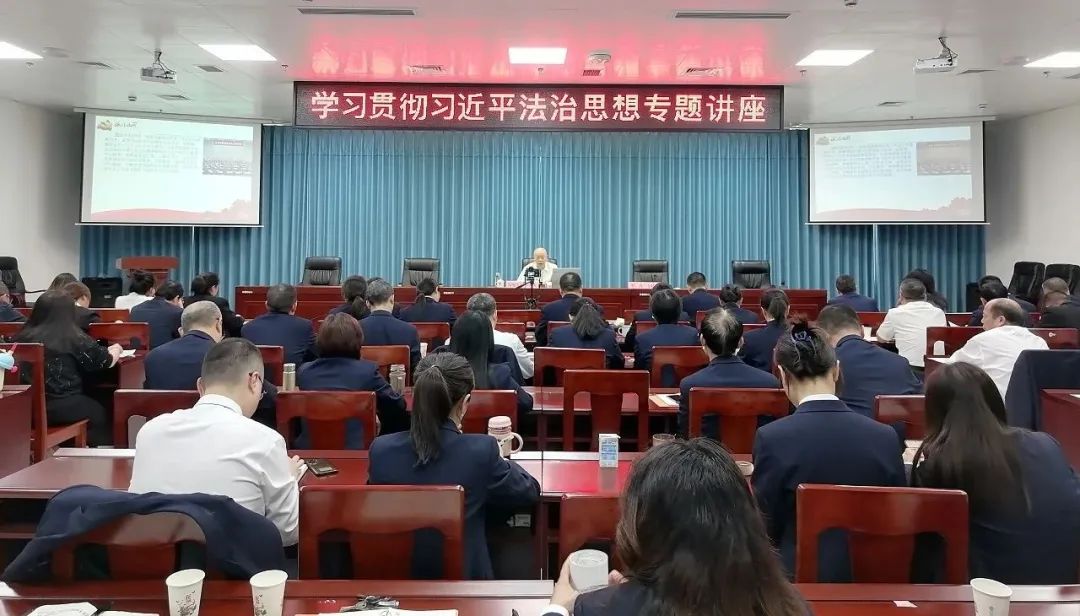 为深入贯彻习近平法治思想,强化司法行政系统法治思维,推动全市司法行政工作法治化水平,4月25日,射洪市司法局组织开展学习贯彻习近平法治思想专题讲座。射洪市司法局全体在岗工作人员、公证处和律师事务所主要负责人、基层法律服务工作者协会理事会成员共计100余人参加。