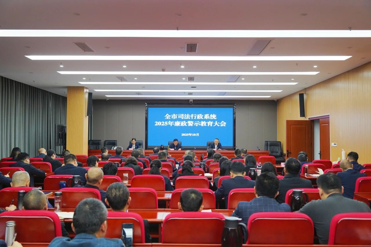 为进一步强化全市司法行政系统干部职工的纪律意识和规矩意识,营造风清气正的政治生态、推动司法行政事业健康发展,10月21日下午,遂宁市司法局组织召开全市司法行政系统2025年廉政警示教育大会。市司法局党组书记、局长李静波主持会议并讲话,市、县两级司法局全体班子成员、全体干部职工共计200余人通过现场及视频形式参会。
