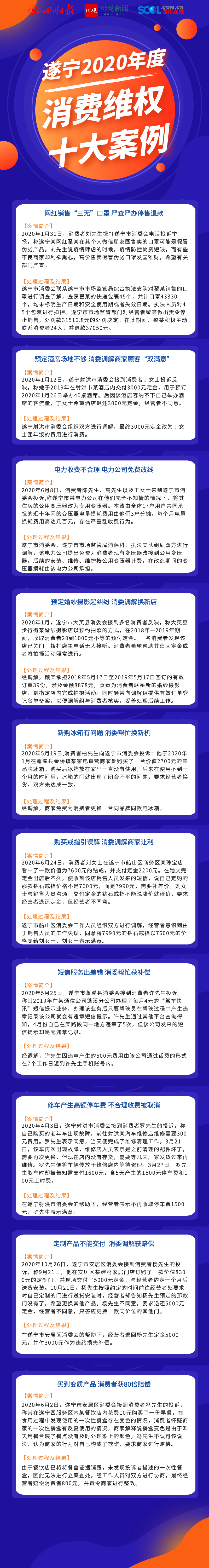 日前遂宁市消委会发布了2020年度消费维权十大案例。案例涉及家电买卖、预付款、短信订阅、车辆维修等多个领域。具体如下: