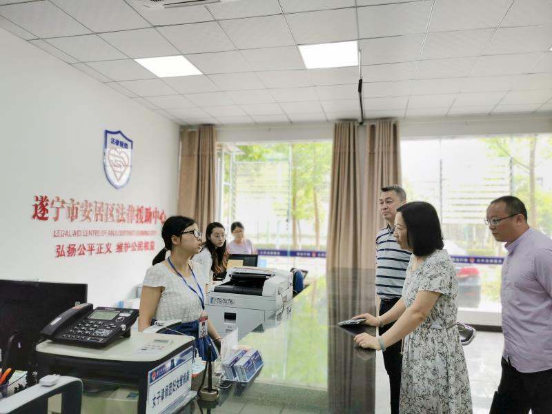 6月1日,市司法局副局长王小容带队赴安居区司法局调研法律援助工作,安居区司法局党组书记、局长陈立新陪同调研。 调研组走访调研了安居区东禅镇公共法律服务工作站,详细了解了工作站人员配备、窗口设置、援助案件受理、法律咨询等情况;随后,调研组到安居区公共法律服务中心、安居区法律援助中心,实地查看了法律援助窗口设置、援助案件受理、日常工作开展等情况,亲身体验了通过智能机器人"安小法"申请法律援助全流程。 实地调研后,调研组一行在安居区司法局四楼会议室召开了座谈会,随机抽选了18件法律援助案件开展了质量评查工作。陈立新对近两年安居区法律援助工作开展情况做了详细具体汇报,王小容对"安居区女子律师服务团"、"春风助老脱贫法律援助专项行动"等创新工作予以了充分肯定,并就今后开展法律援助工作提出三个具体要求: 一是创品牌,大力推动女子律师团等亮点工作。今年,安居充分发挥全局女子律师多、亲和力强、心思细腻的优势,组建了女子律师团,满足了农民工、妇女儿童等弱势群体维权的专业化和个性化需求,在社会上取得良好反响。要继续把这些创新、亮点工作做深做细做出实效,形成具有安居特色的法律服务品牌。 二是强担当,全力服务党委政府中心工作。要找准司法行政与脱贫攻坚、法治乡村建设、法治保障等中心工作的结合点,持续开展好"春风"助老脱贫法律援助专项行动,助力推动好"345"基层社会治理工程,有力服务好重大遗留问题、突发性事件等涉法事务处理,有效维护社会和谐稳定。 三是重质量,持续加强法律援助工作管理。案件质量是法律援助的生命线,要加强对社会律师办理援助案件的就地指导,强化业务培训,不断提高社会律师、援助律师、基层法律工作者等办理法律援助案件的责任感,不断规范法律援助办案程序,切实提升办案实效。 (遂宁市司法局 何秋凤供稿)