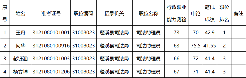 (一)面向社会公开考试录用进入面试资格审查人员名单