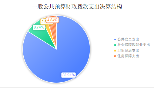 2023年度一般公共预算财政拨款支出2201.20万元,主要用于以下方面:公共安全支出1846.99万元,占83.91%;社会保障和就业支出192.34万元,占8.74%;卫生健康支出55.30万元,占2.51%;住房保障支出106.58万元,占4.84%。