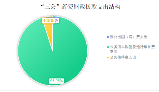 2023年度“三公”经费财政拨款支出决算中,因公出国(境)费支出决算0万元,占0%;公务用车购置及运行维护费支出决算9.99万元,占95.05%;公务接待费支出决算0.52万元,占4.95%。具体情况如下: