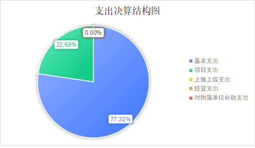 2023年度本年支出合计2202.04万元,其中:基本支出1,702.55万元,占77.32%;项目支出499.49万元,占22.68%;上缴上级支出0万元,占0%;经营支出0万元,占0%;对附属单位补助支出0万元,占0%。