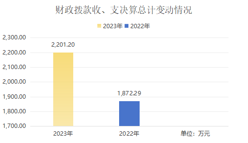 2023年度财政拨款收、支总计均为2201.20万元。与2022年度相比,财政拨款收、支总计各增加328.91万元,增长17.57%。主要变动原因是承办了全国法治论坛。