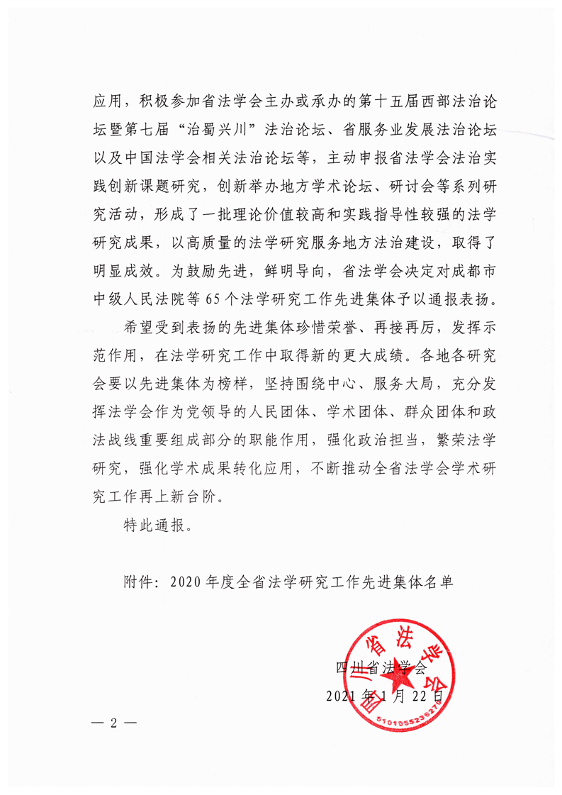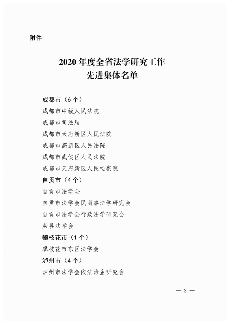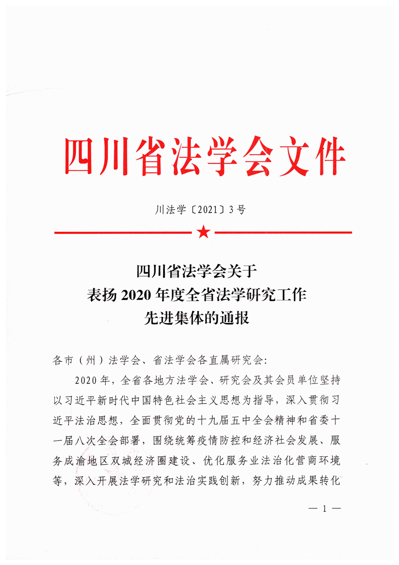 四川省法学会关于表扬2020年度全省法学研究工作先进集体通报