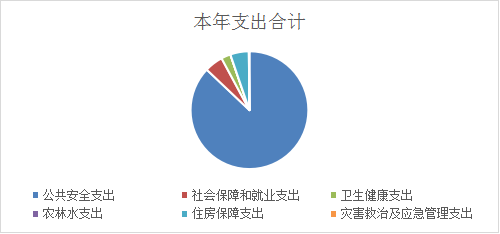 2021年一般公共预算财政拨款支出2190.85万元,主要用于以下方面:公共安全(类)支出1907.55万元,占87.07%;社会保障和就业(类)支出111.19万元,占5.08%;卫生健康支出56.67万元,占2.59%;农林水支出0.3万元,占0.013%;住房保障支出111.14万元,占5.07%;灾害防治及应急管理支出4万元,占0.18%。