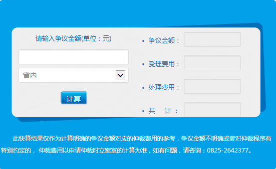 官网和微信公众号均设立有“费用速算”栏目,只要输入争议标的金额,仲裁费用一目了然。