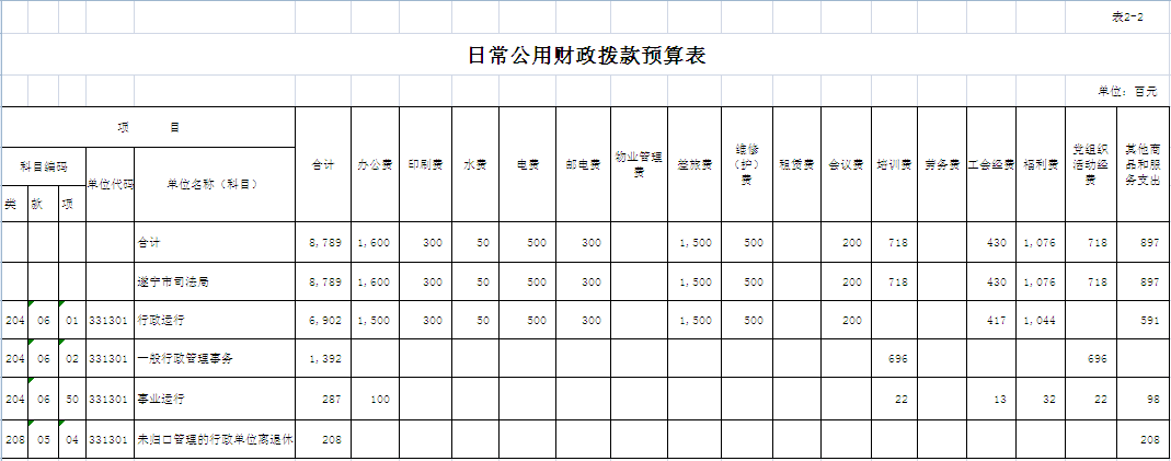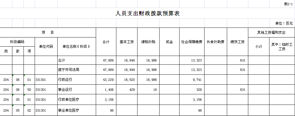 (二)社会保障和就业支出2.08万元,主要用于:司法行政机关及事业单位离退休人员支出。