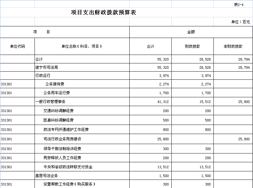 项目支出,是用于保障司法行政机关、下属事业单位等机构为完成特定的行政工作任务或事业发展目标,用于专项业务工作的经费支出。