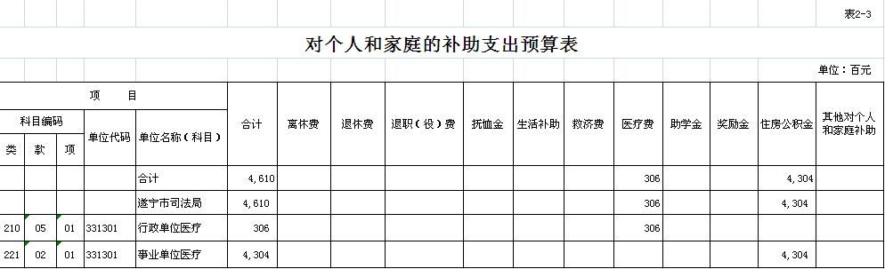 表2-3.对个人和家庭的补助支出财政拨款预算表