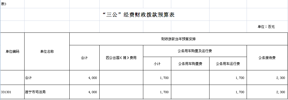 市司法局2016年“三公”经费财政拨款预算数40万元,其中:公务接待费23万元,公务用车购置及运行维护费17万元。
