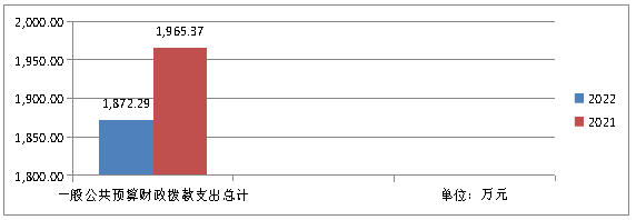 2022年一般公共预算财政拨款支出1,872.29万元,占本年支出合计的97%。与2021年相比,一般公共预算财政拨款支出减少93.08万元,下降5%。主要变动原因是厉行节约减少支出